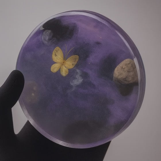 Hand-cast resin pendant infused with selected crystals